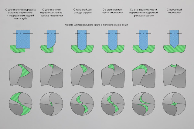 - с увеличением передних углов на кромке перемычки и подрезанием задней части зуба