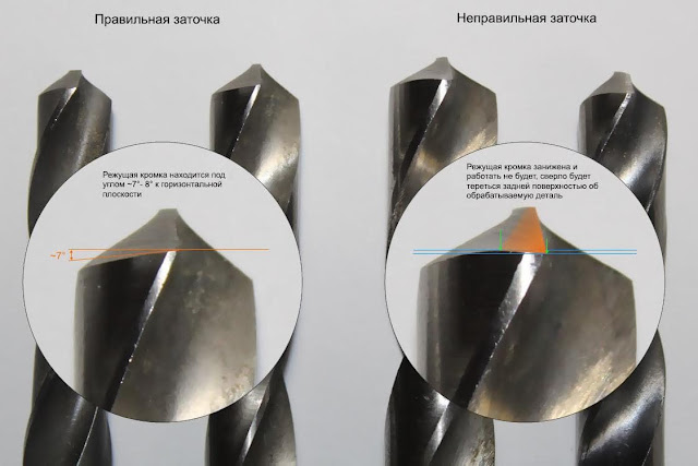 Правильная и не правильная заточка сверла |